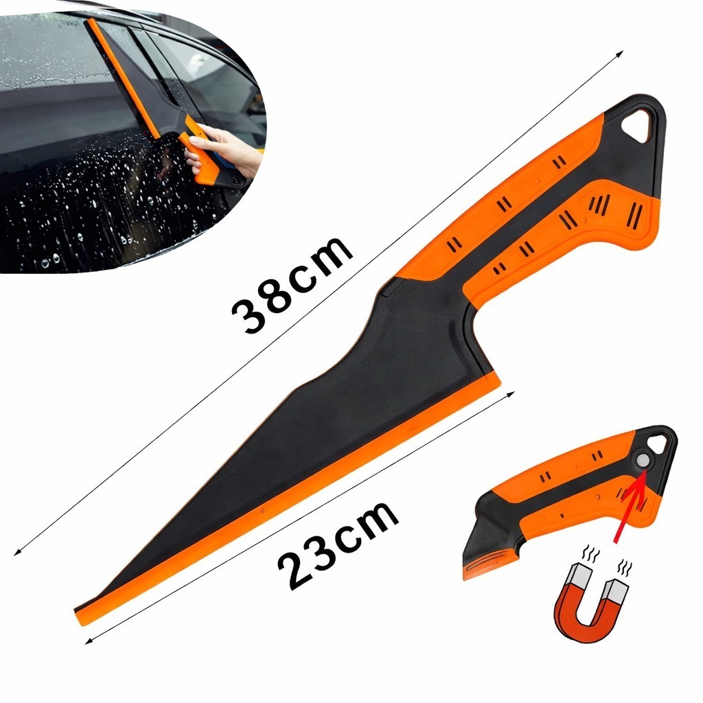 Integrated magnetic handle allows the squeegee to securely attach to metal surfaces such as car bodies for easy access and storage—no more misplacing it.